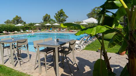 - Piscine avec terrasse ensoleillée et verdure luxuriante